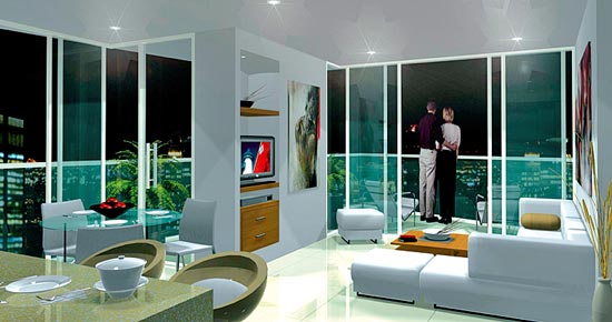 The apartments have two or three bedrooms, kitchen, service bedroom with bathroom inside, laundry area, living dinning room and balcony.