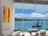 - Dinning living room of great transparency with view to the sea and the bay.