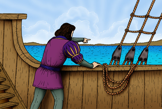 The moment Rodrigo de Bastidas discovers the Bay of Cartagena.